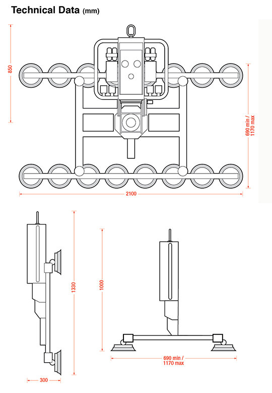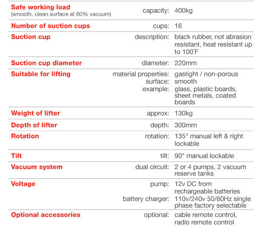 The DSL2 dual circuit lifter is a first-rate machine for you vacuum lift, capable of lifting all forms of curved glass and plastics weighing up to 400kg.