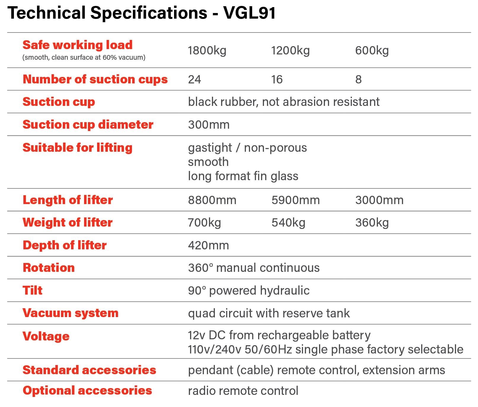 - Depth of lifter: 420mm (VGL91), 330mm (VGL92)