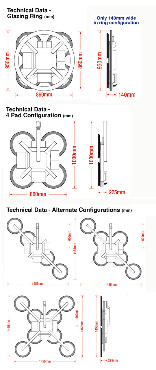 - 8, 6 or 4 x 400mm diameter suction cups