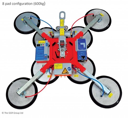 The GGR600+ features all the benefits of other vacuum lifters, including a 300-600kg safe working load and 360° lockable rotation. The glazing sucker installation ring can easily clear the narrow space between a façade and scaffolding, yet still allow glass panels to be rotated into position.