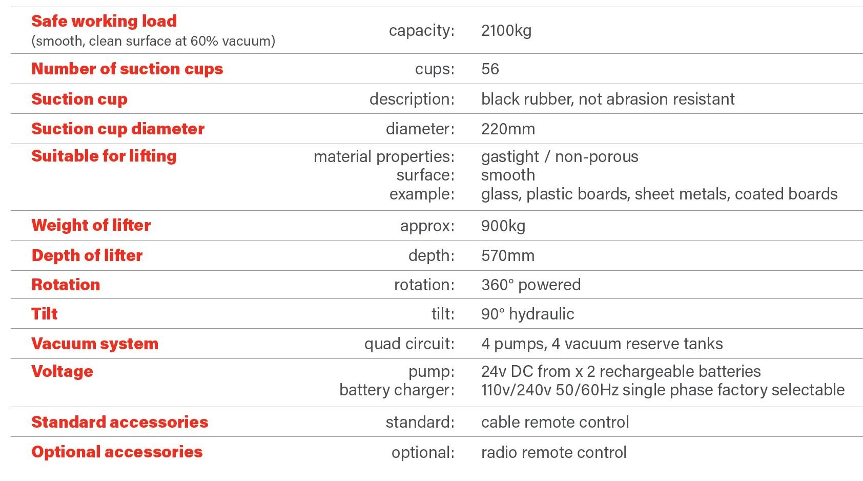 Materials are lifted via vacuum pads, mounted onto flexible swivel arms that can mould themselves to the unique shape of each load. The Hydraulica 2100 Curved comes with Quad-Circuit technology, with four independent vacuum circuits for safer & more efficient lifting performance on site.