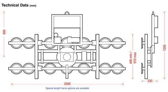 Featuring flexible swivel arms which swing in and out to allow fast attachment to curved surfaces, the Kombi 7211-DSG vacuum lifters are an ideal aid for lifting curved glass, metal, and composite materials with a minimum radius of 1000mm. This 14 or 16 pad lifter can handle smooth and slightly structural finishes and comes with a 200-250kg safe working load.