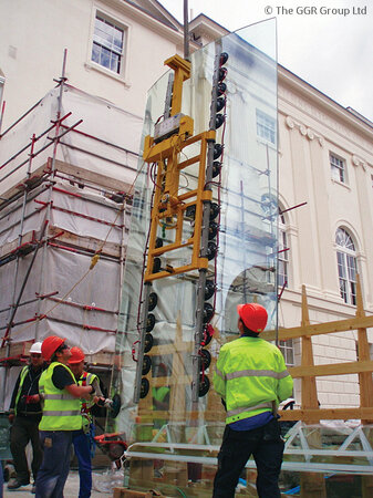 Concave and convex glass can be lifted with ease using the Kombi 7211-DSG curved glass vacuum lifters.