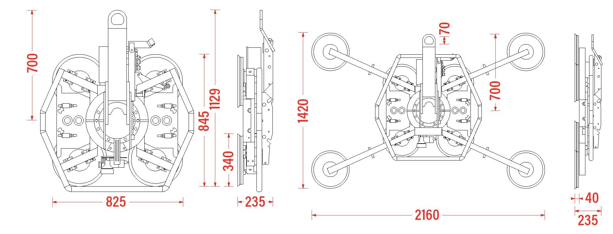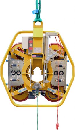 This vacuum lifter is ideal for use with UNIC mini spider cranes, tower cranes and counterbalance beams for installing glass below low level and high-level overhangs.
