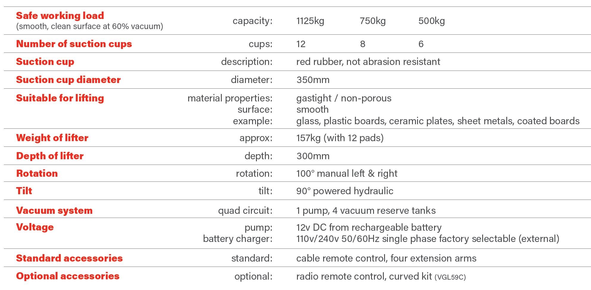 - Capacity: 1125kg (dependant on configuration)