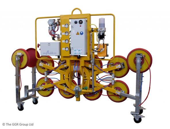 The Kombi 7441-Quadra glass lifter is a safe pair of hands for moving heavy and unusually shaped glass loads as it uses four independent vacuum circuits and a multi-configurable frame to lift up to 1125kg.