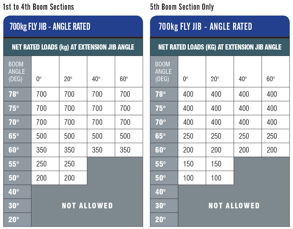The 700kg capacity attachment is suitable for use with our UNIC URW-095 and URW-295 mini spider cranes. This searcher hook and fly-jib combo increases the maximum working radius of these cranes from 8.41m to 9.8m and their maximum lifting height from 8.8m to 10.47m. Please see rated load charts below for more information.