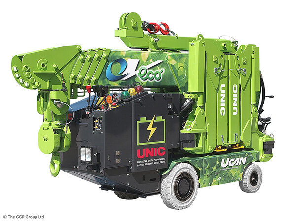 Introducing the latest in mini crane engineering, the UNIC battery powered Eco-UNIC model provides fume-free lifting for sensitive environments. Ideal for food processing plants, listed buildings, airports, clean environments and even cruise ships, this unique spider crane is powered by a rechargeable 48v battery with no diesel emissions impacting on the surrounding atmosphere.