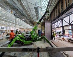 Measuring just 750mm wide, the new Eco spider crane is designed for interior access and retains all the lifting power of our standard models without compromising on operational efficiency. Alongside cutting edge technology, this innovative machine is the first spider cranes to feature low marking wheels for ultimate manoeuvrability when working on light-coloured or polished floor surfaces, making it the ideal choice for shopping centres, galleries, hospitals and more. The UNIC ECO-095-WBE model has a lifting capacity of up to 0.995t tonnes to a height of up to 8.9 metres.