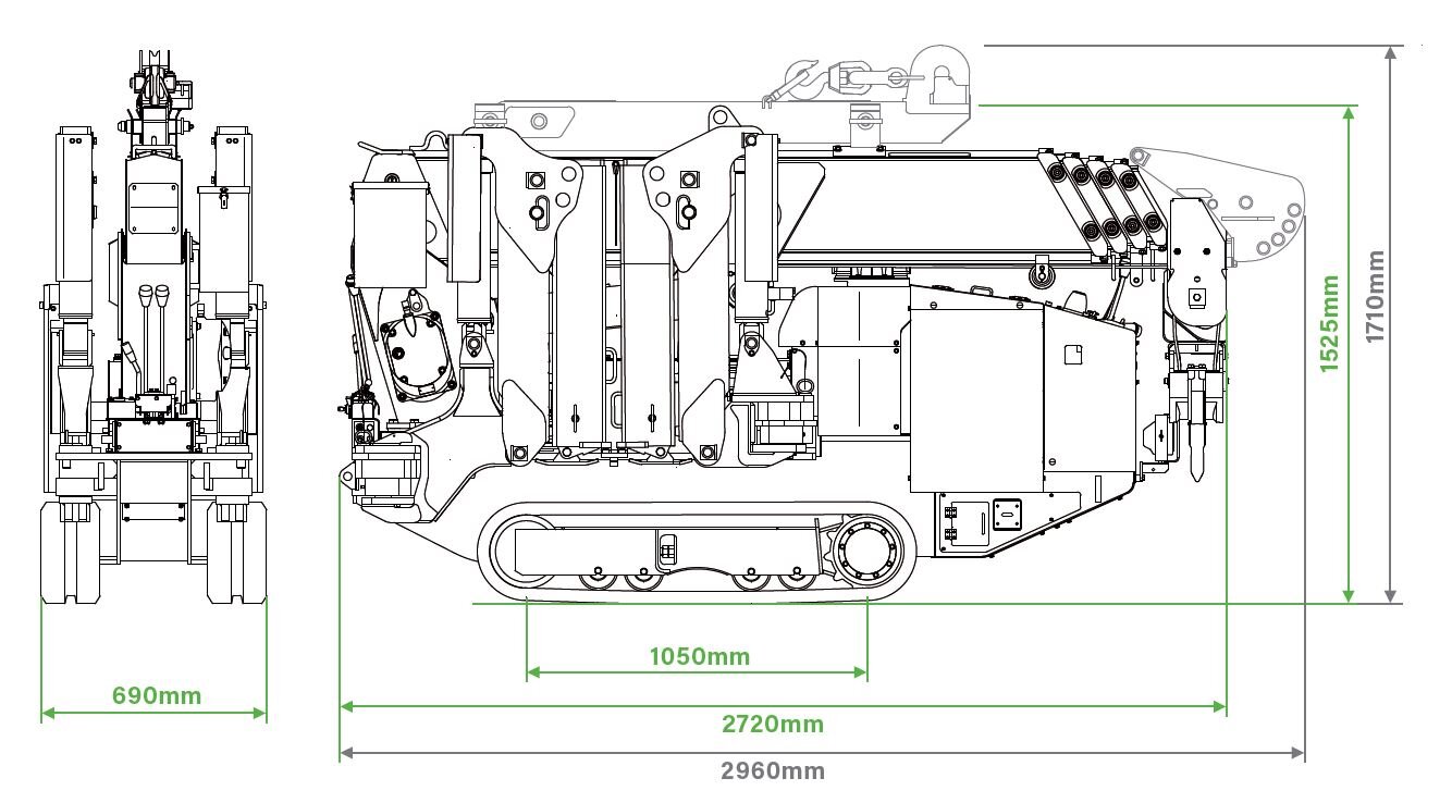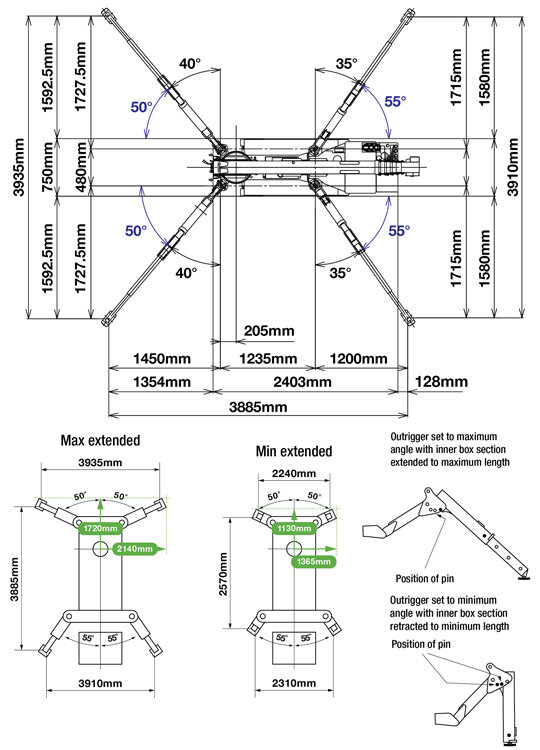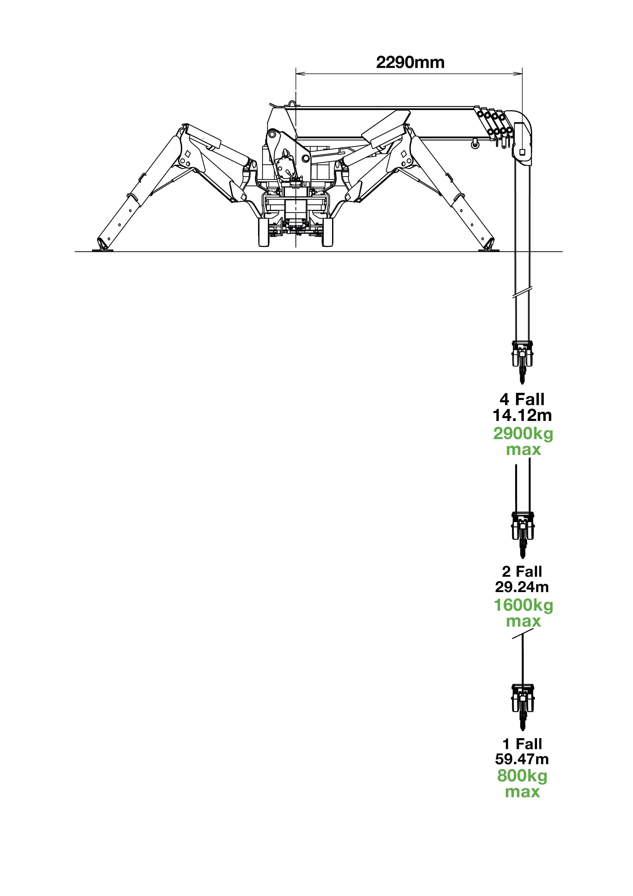 This mini spider crane is still compact enough to fit through a standard double doorway, yet boasts an impressive lifting power of up to 2.9 tonnes without compromising on operational efficiency.