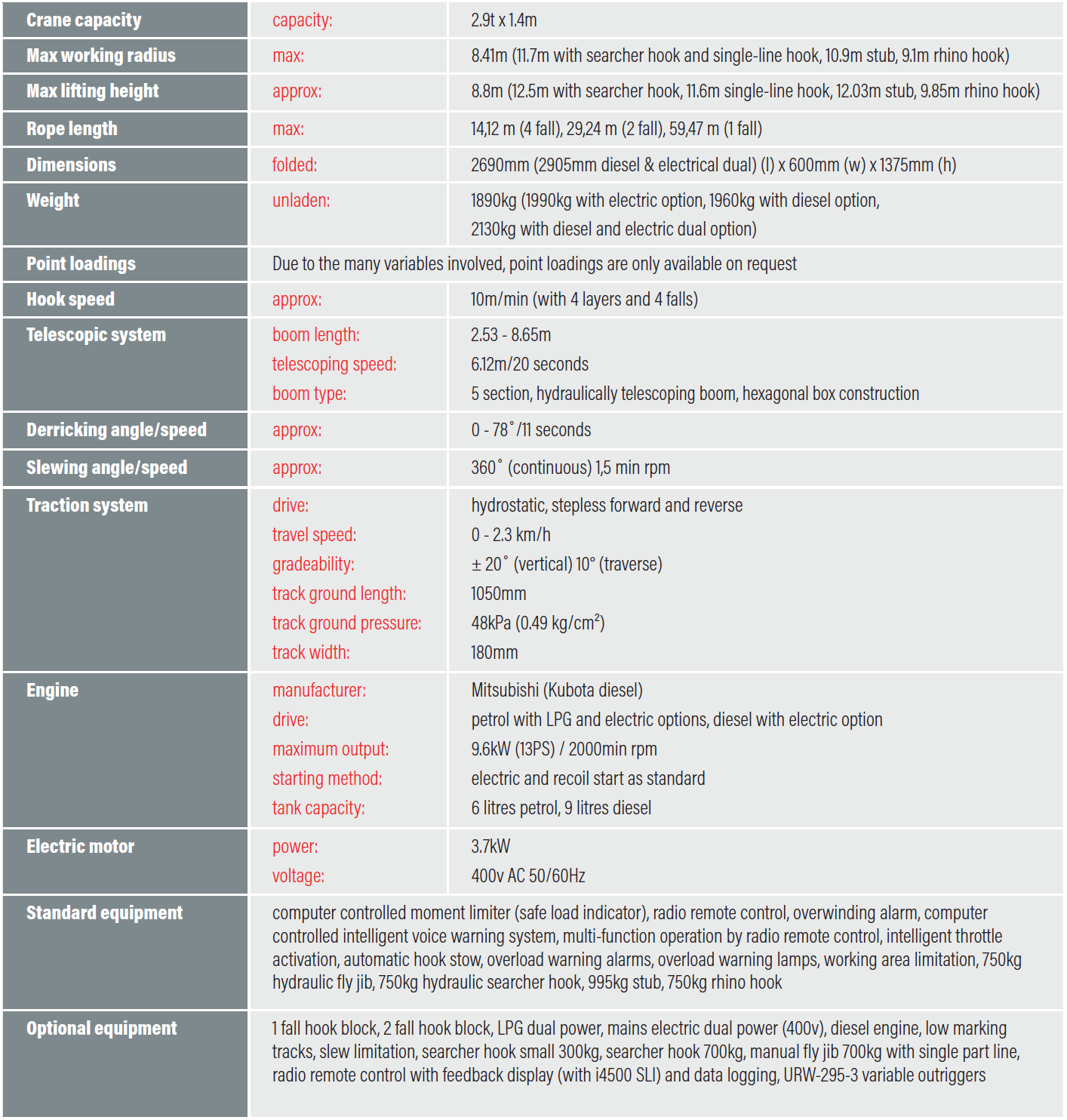 The URW 295 with hydraulic jib builds upon the proven features of the URW-295 and introduces four innovative attachments, enhancing its versatility for diverse lifting applications.