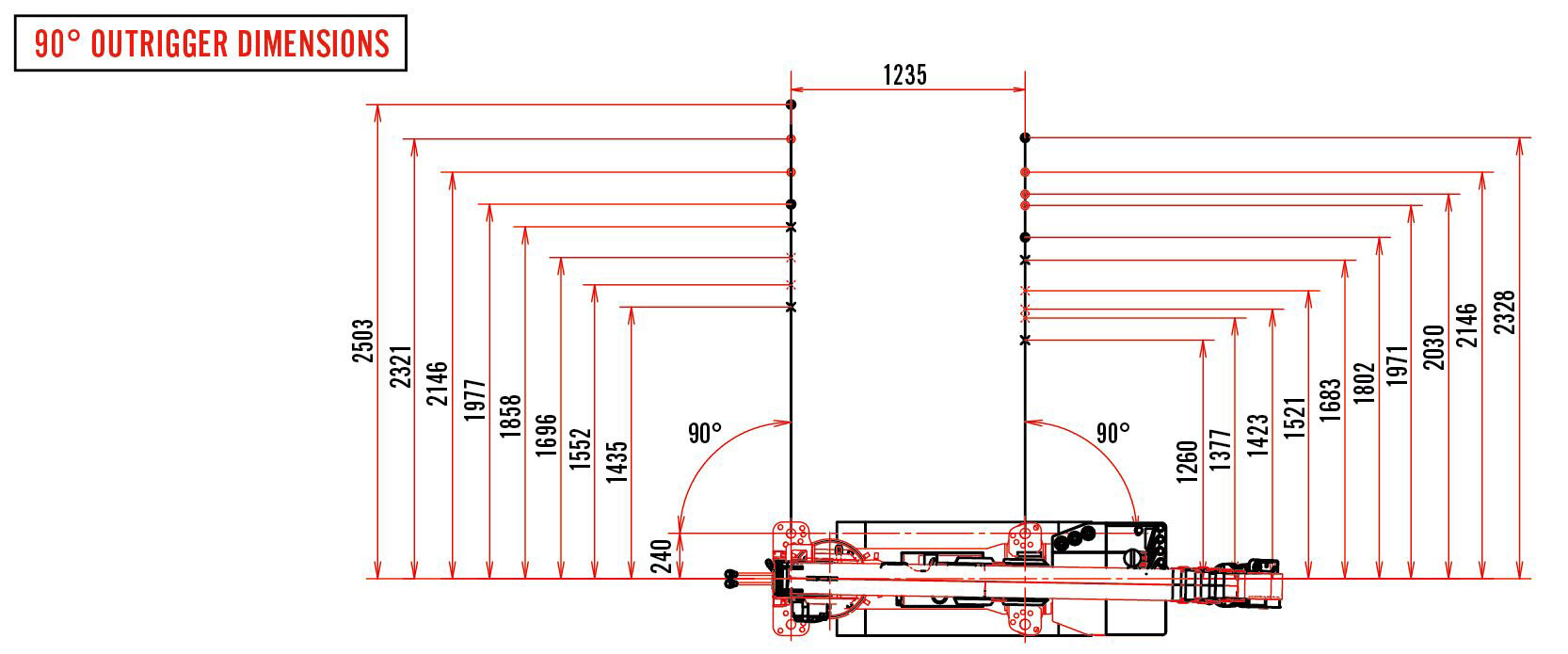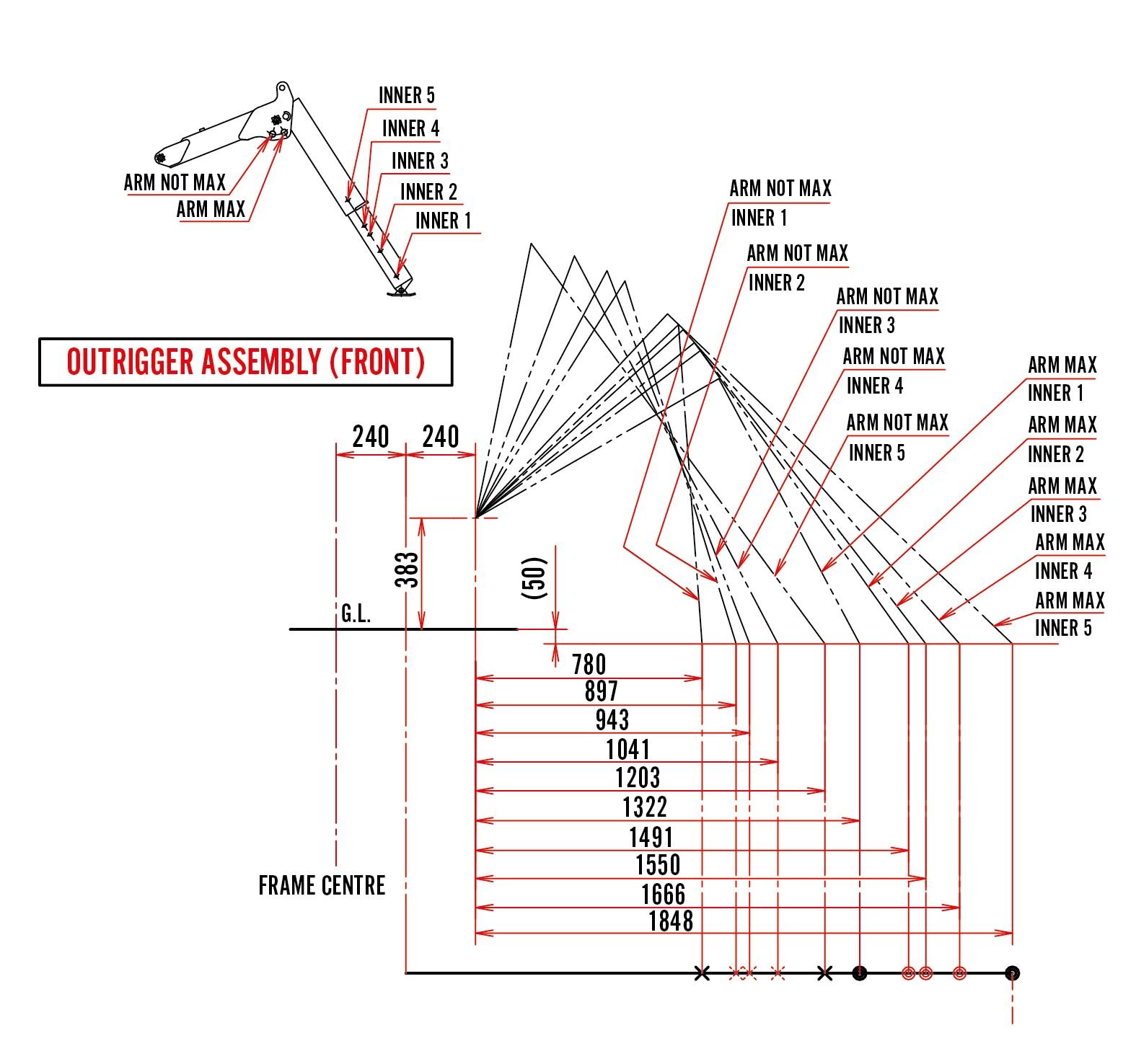 The addition of variable outriggers means this mini crane can operate in spaces where other mini cranes cannot. The adjustable outriggers reduce the working footprint of this already compact mini machine, making it ideal for working in extremely tight and small spaces.