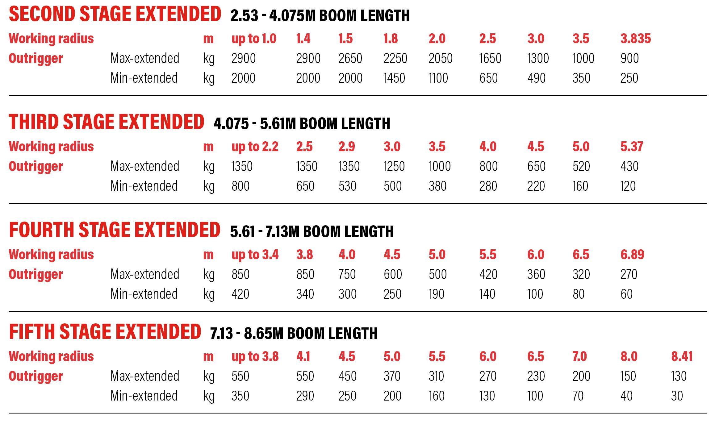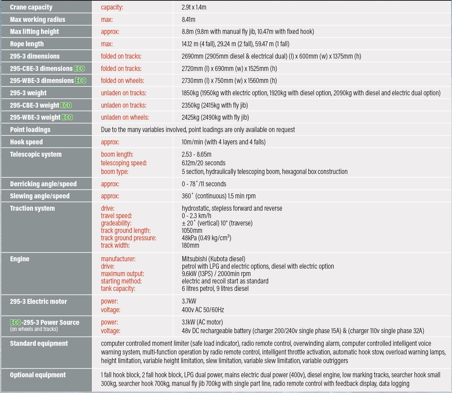 - Max lifting height 8.8m (9.8m with fly jib, 10.47 with fixed hook)