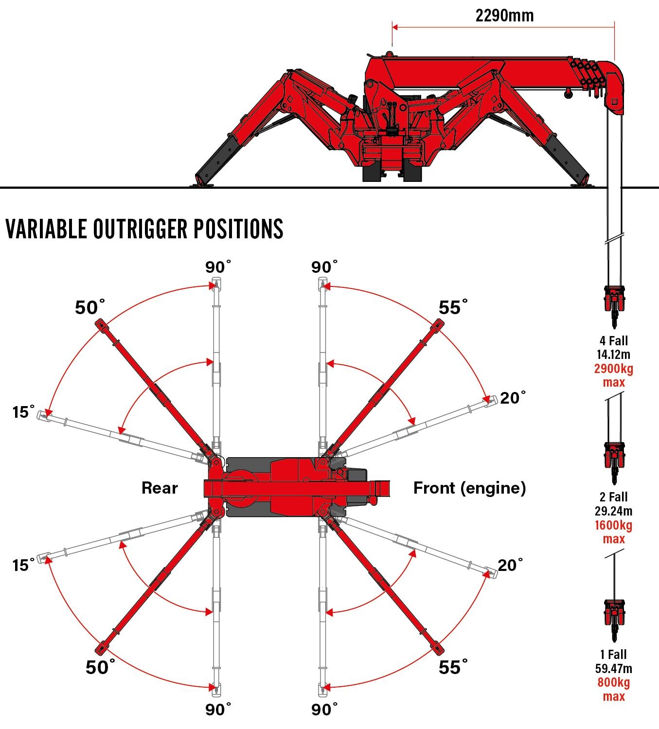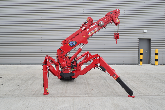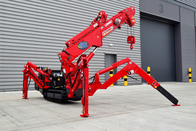 The UNIC URW-295-3 retains all the benefits of the standard URW-295 model, but sees the addition of variable, adjustable outriggers, enabling this mini crane to operate around fixed obstacles on site to suit the lifting requirements of each project.