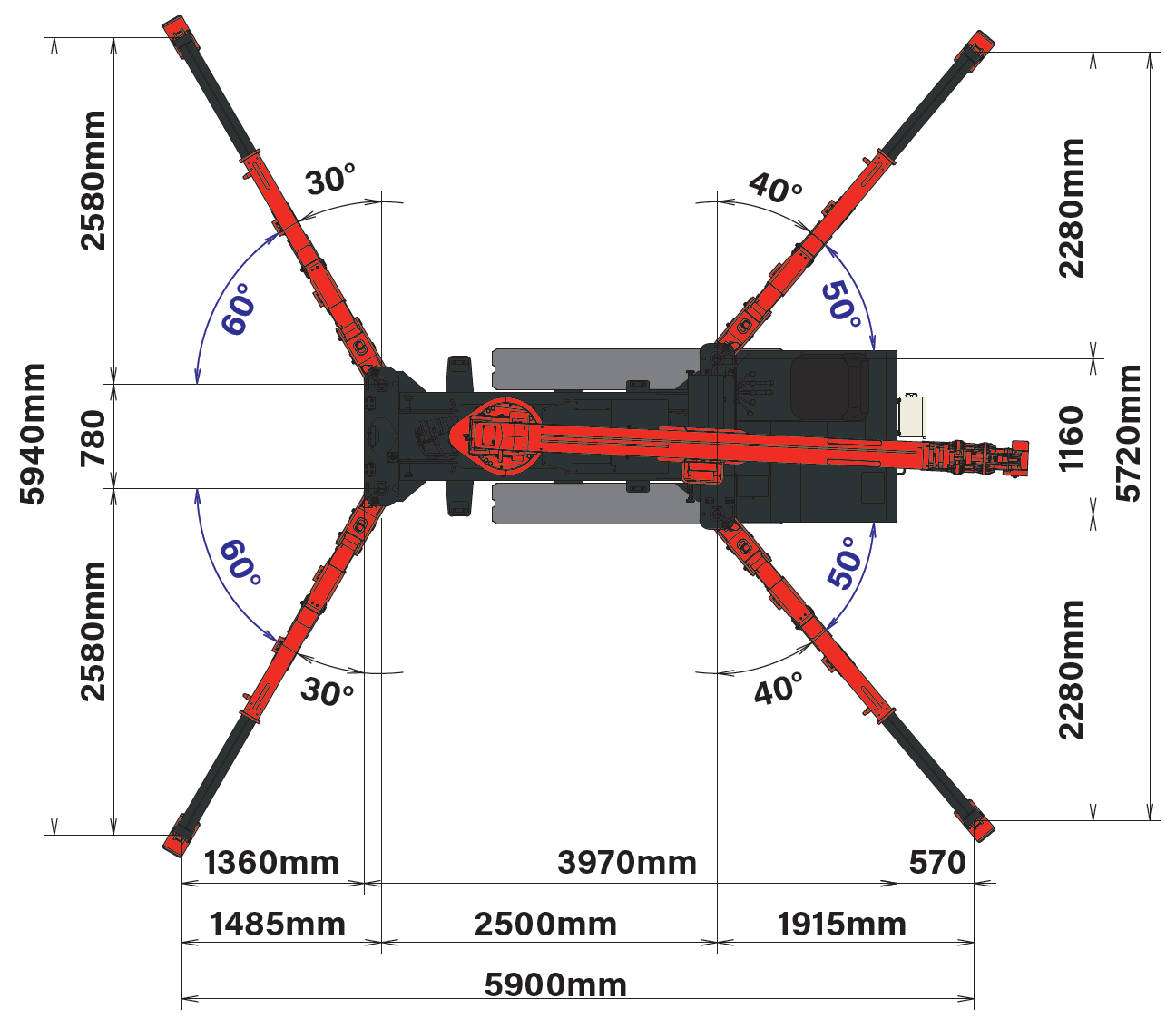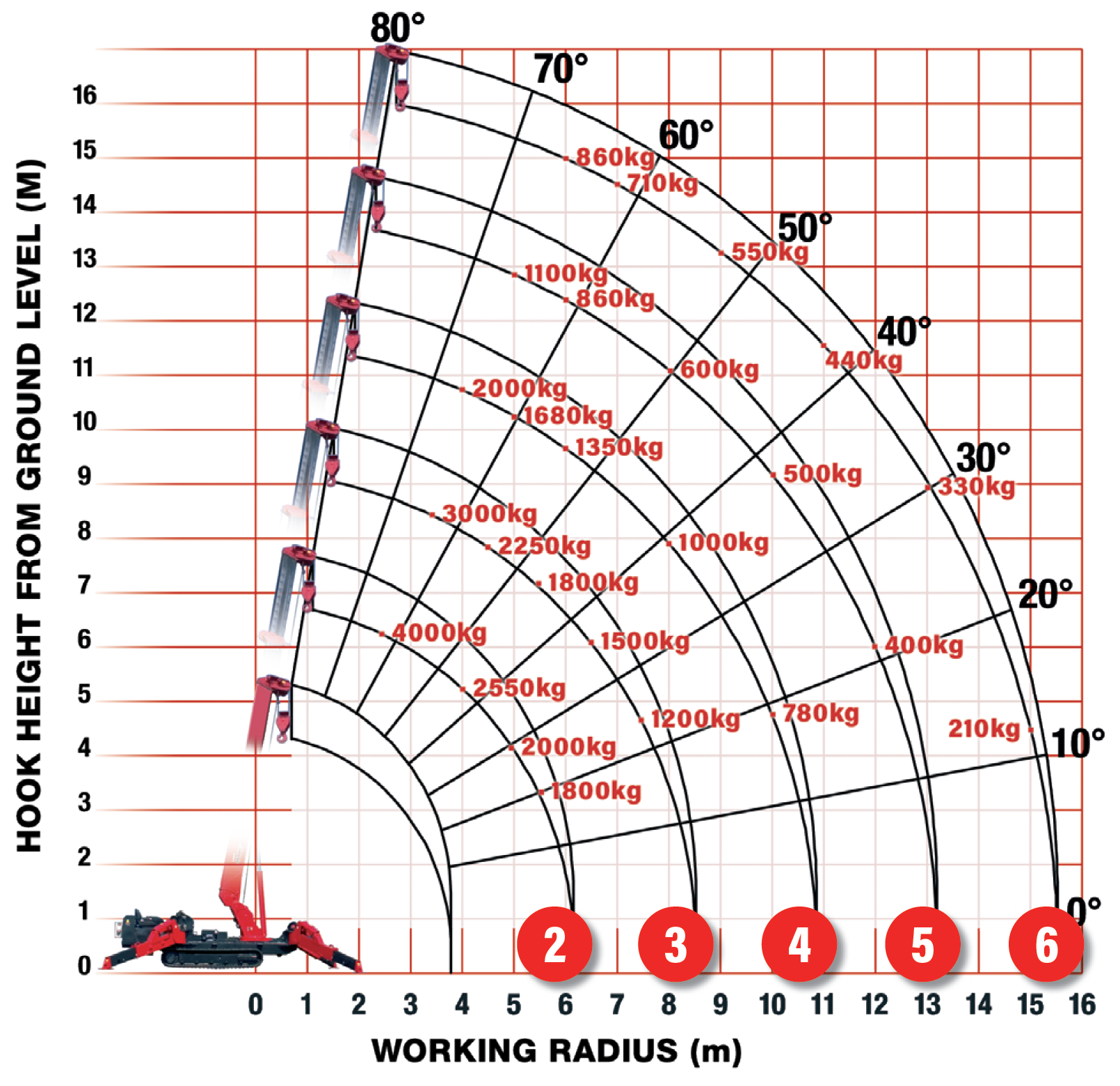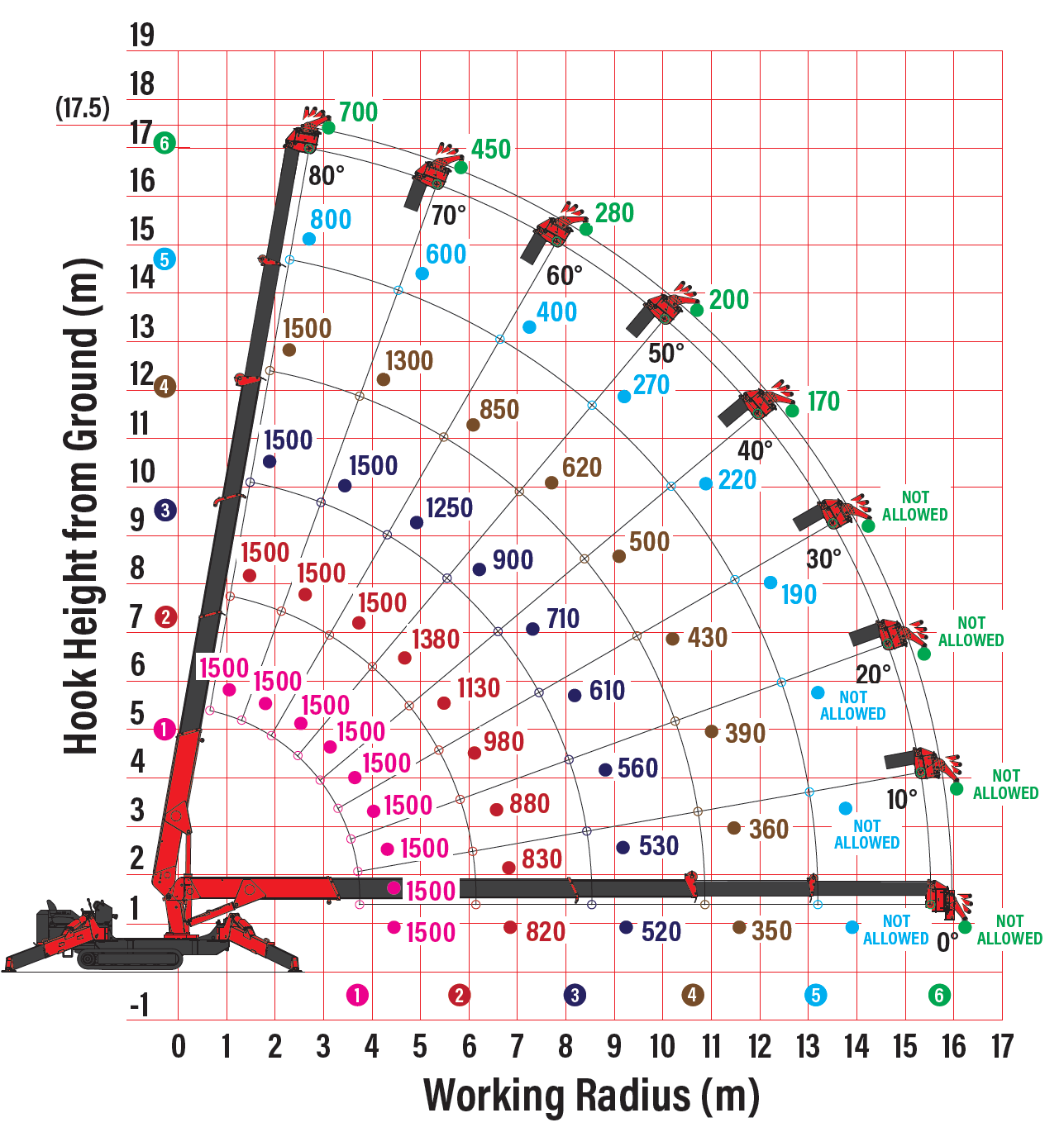 - Max working radius 17m with searcher and single-line hooks