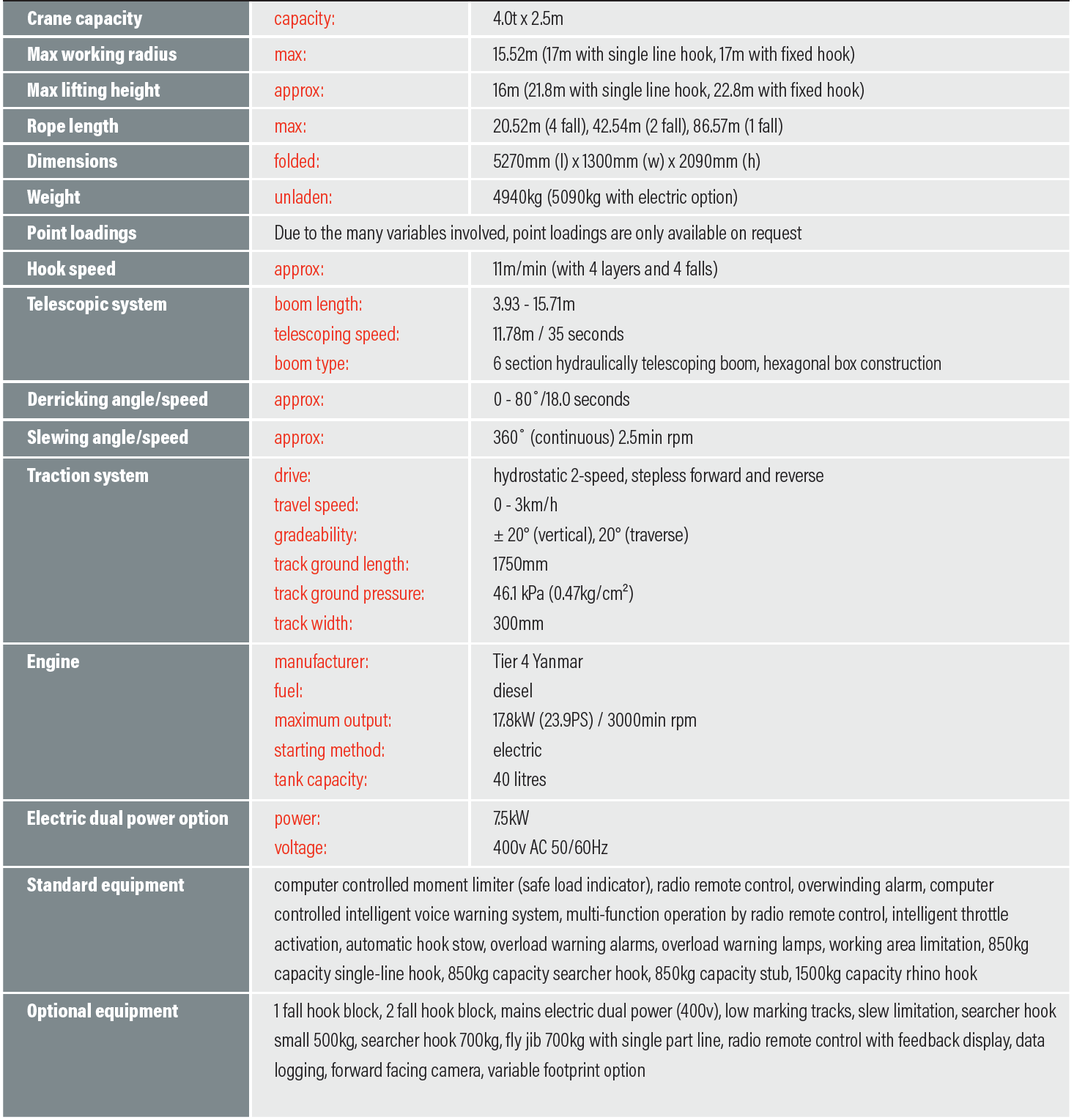 - Capacity 4.0t x 2.5m