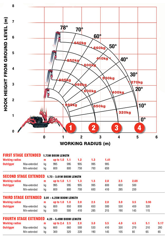 - Max working radius 5.17m