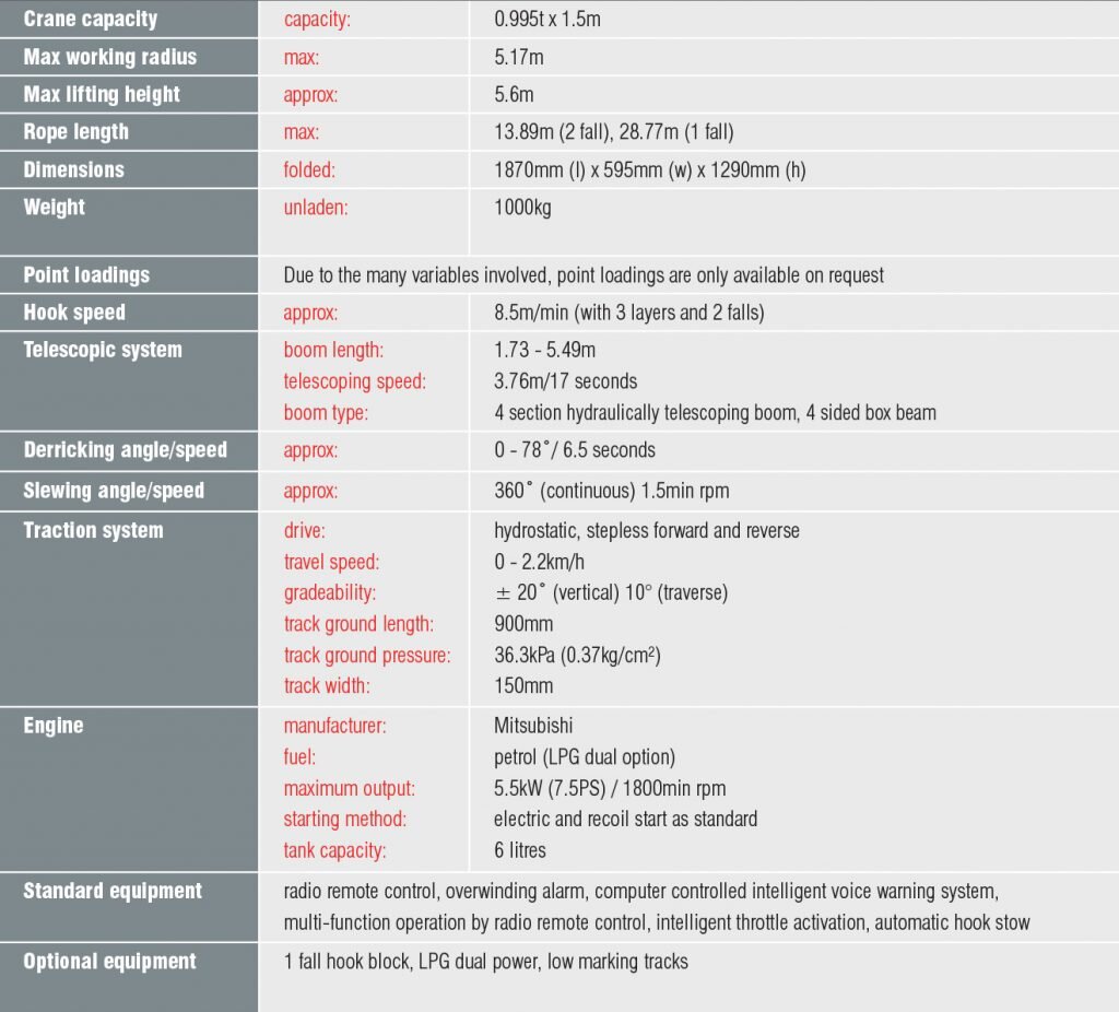 Super slim, lightweight and strong is what sets the UNIC URW-094 spider crane apart from larger, more traditional cranes. Measuring just 595mm wide and weighing only 1000kg, this micro machine is the world’s smallest mini crane.