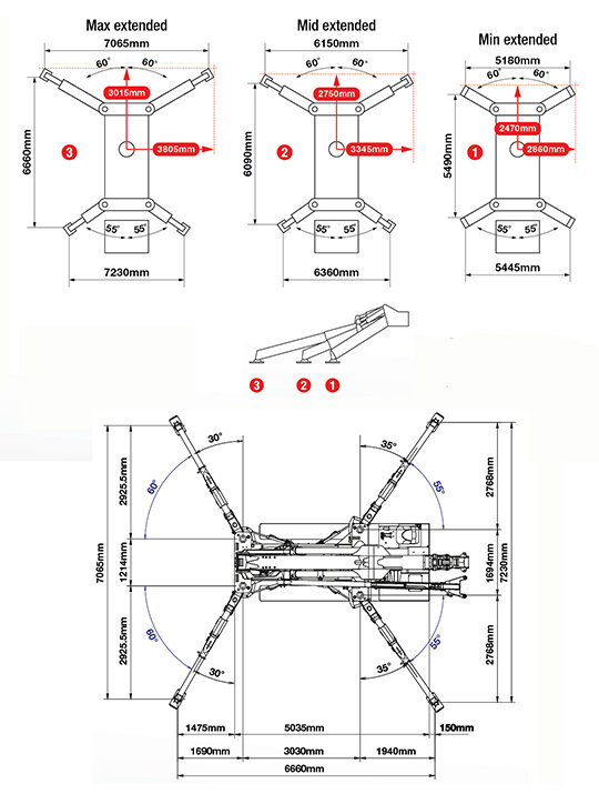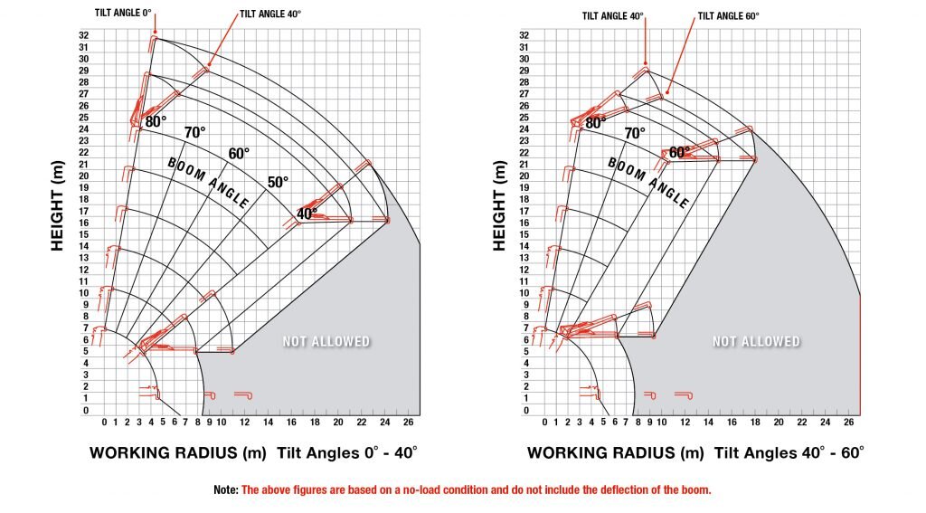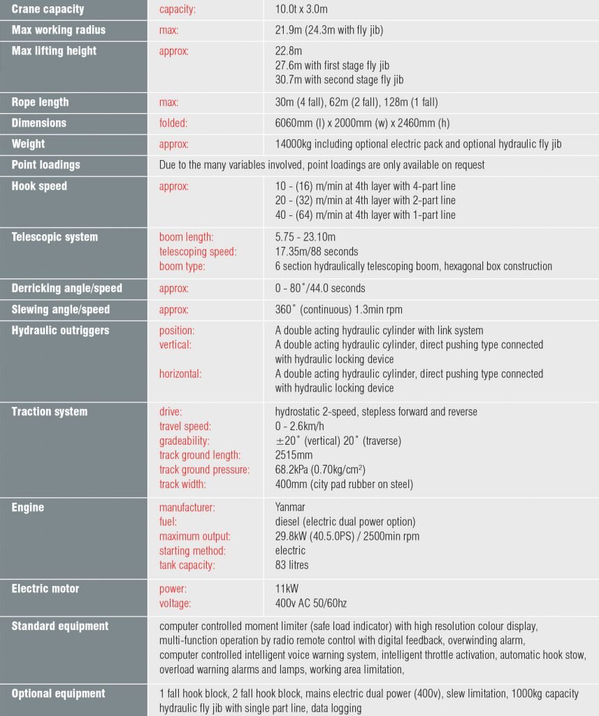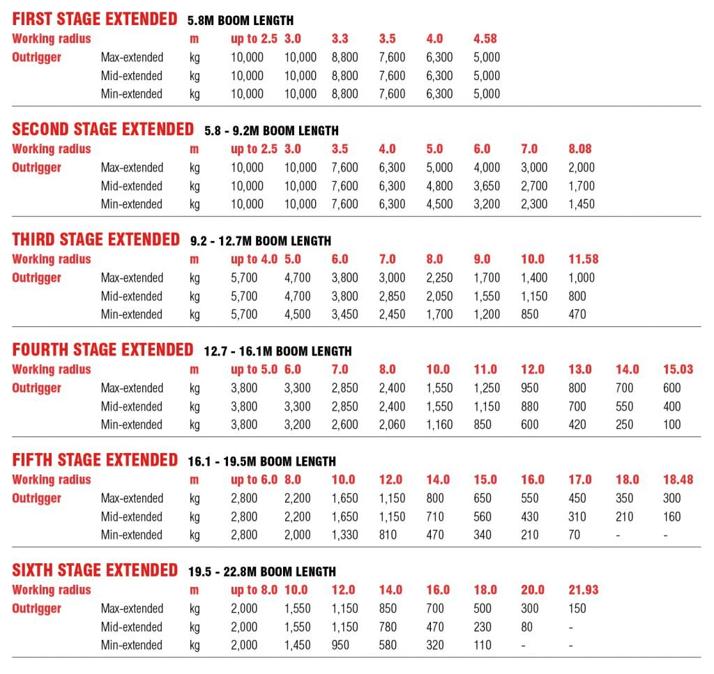 - Max lifting height 22.8m (30.7m with second stage fly jib)