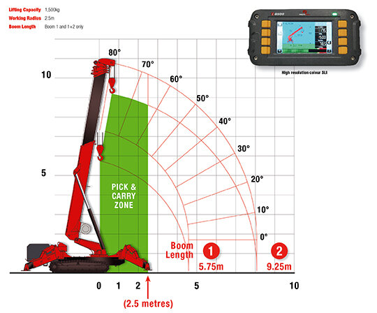 This versatile mini crane also has a unique pick and carry function which enables it to travel with loads up to 1.5 tonnes. Its configurable outriggers provide maximum stability when lifting on uneven surfaces thanks to their full safety interlocking system.
