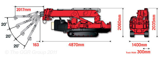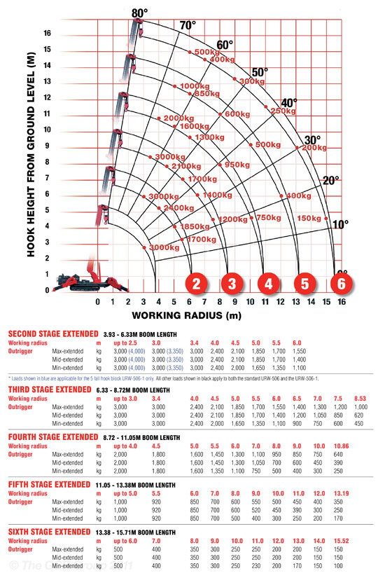 - Max lifting height 16m (17.79m with fly jib, 18.46m with searcher hook)