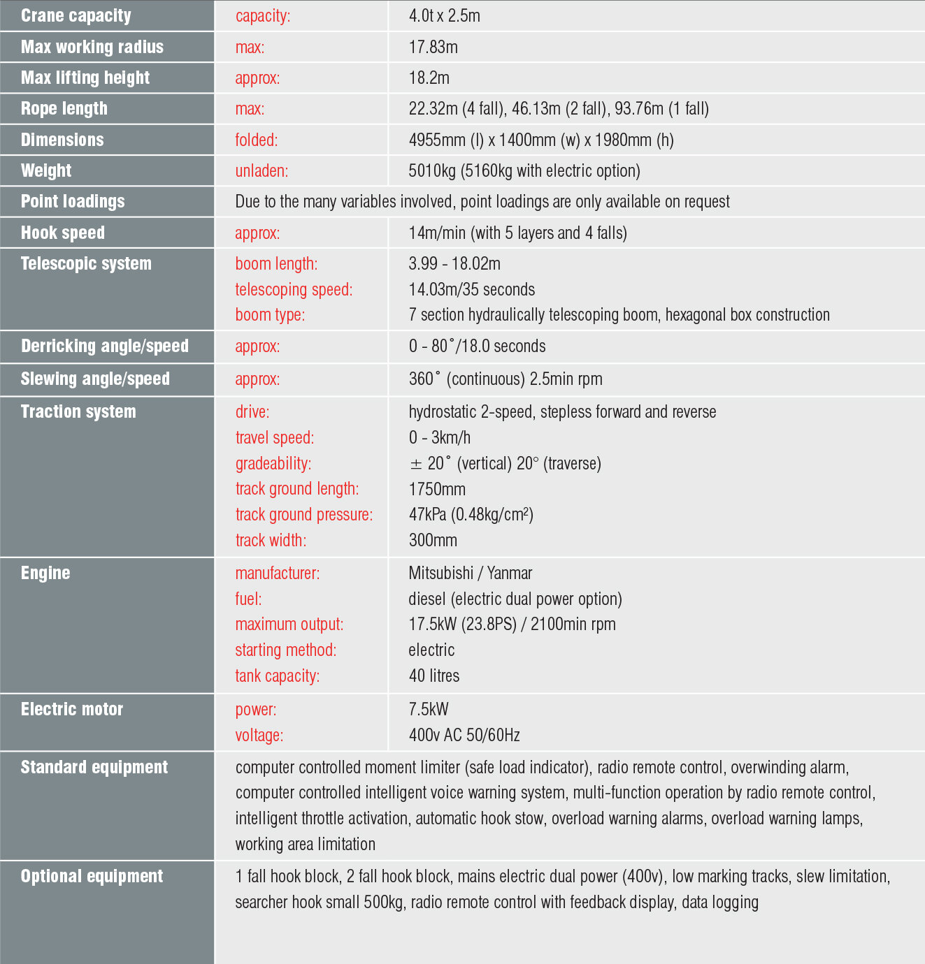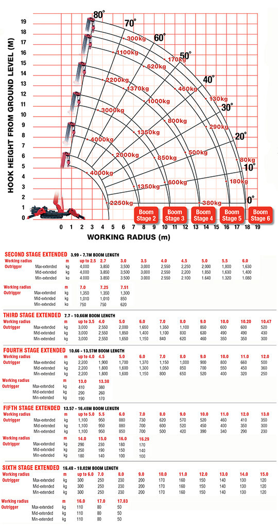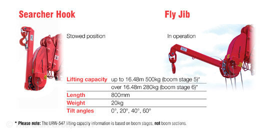 The URW-547 offers extended reach, providing a maximum lifting height of 18.2m and a maximum lifting capacity of 4 tonnes as standard on the main boom.