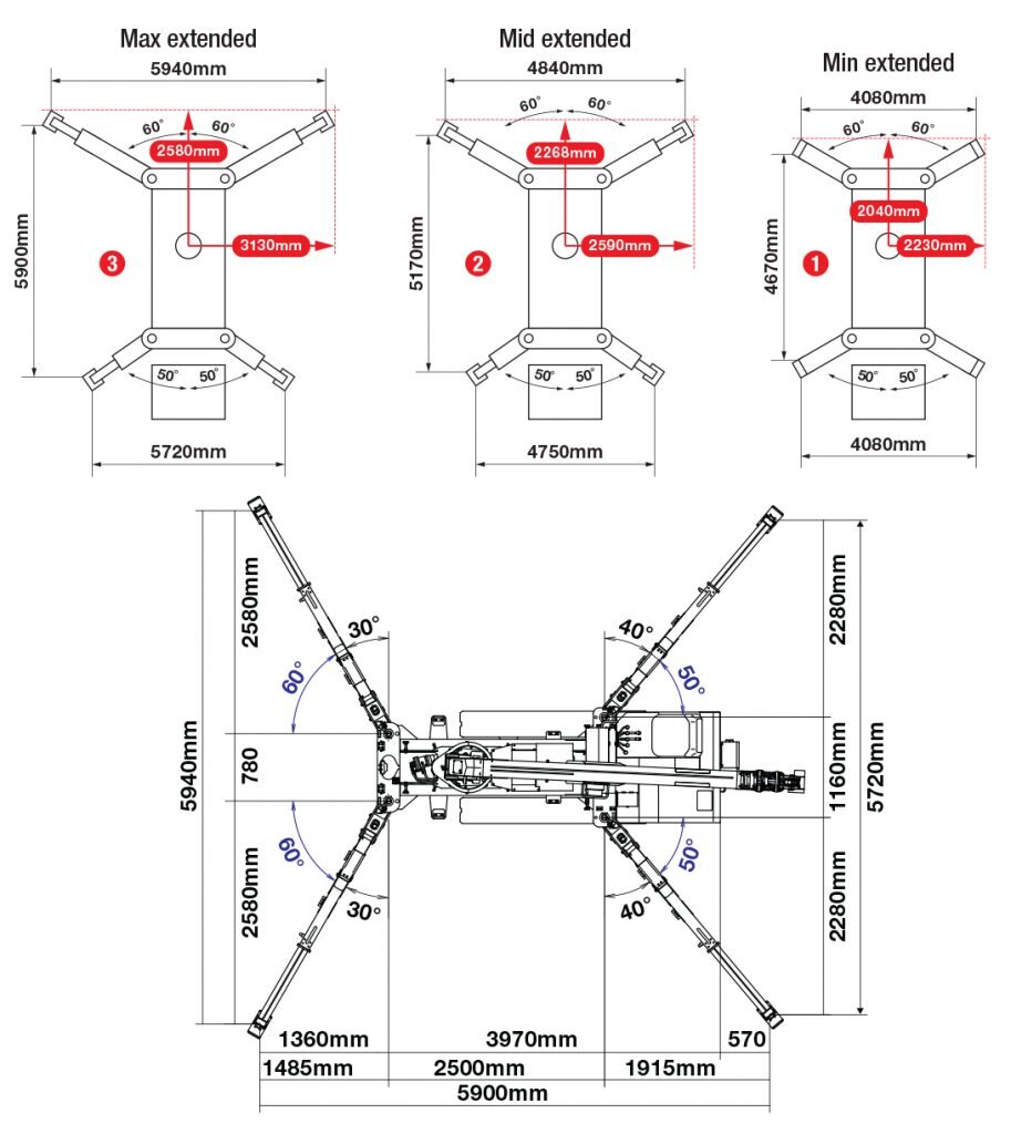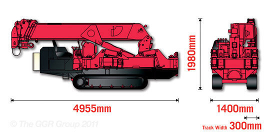 The outrigger footprint remains the same as the URW-506, maintaining its compact dimensions. An option of additional length is given with a quickly installed searcher hook, with angles varying for 0° to 60° and a maximum capacity of 500kgs.